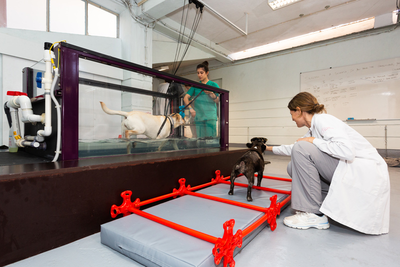 Os exercícios dentro de água são menos dolorosos. Este elemento tem um efeito de suporte graças à força de impulsão que confere. Estas propriedades criam uma sensação de segurança no seu companheiro principalmente quando inicialmente acompanhado na água por um dos veterinários.